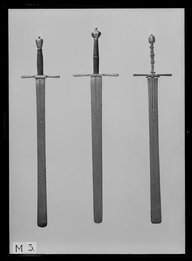 | Keywords: Bödelssvärd, Weilm Klein, Solingen, 1610-ca 1630 - Livrustkammaren - 17910.tif Fäste av stål Sexsidig slät knapp med mittpartiets sidor platt fasade tämligen hög nitknapp Åttsidiga raka parerstänger avsmalnande mot krysset och med rundade ytterändar <br/>Åttsidig kavel lindad med brunt fårskinn runt mitten en utstående list uppbyggd under skinnklädseln <br/><br/>Tvåeggad bred klinga med tvärskuren något rundad ytterände Utmed starka delen hålkäl vari inslaget i koppar på ena sidan +WEILM+ på andra sida +KLEIN+ Ovanför namnen inlagt i koppar på ena sidan ett hjul under ett halvt hjorthorn på andra sidan en galge likaledes under ett halvt hjorthorn original caption ca other date - 1610 1630 size mm 1073 size mm 812 klinga size mm 63 klinga g 2090 LRK Axel Oxenstierna af Södermöre WEILM KLEIN anv b2 - blankvapen - klinga; Wilhelm Klein place of origin Solingen original filename LN_B05012_007892 40163 inventory number LRK 3617 17910 CC0 Bödelssvärd Weilm Klein Solingen 1610-ca 1630 - Livrustkammaren - 17910-negative tif Executioner's sword images from Livrustkammaren Media contributed by LSH dim-with multiple size templates Media contributed by LSH unmatched creator Media contributed by LSH 2013-10 |