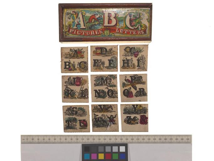 | Keywords: Bodleian Libraries, A B C pictures and letters.jpg  Game entitled A B C pictures and letters; Has nine blocks each except last with 3 letters Blocks have images on one side and words as above but in sixes on other Images do not all correspond to the words Wooden box Box of Johnson copy is damaged; Apple Anchor; Bat Ball; Cage Chain; Drum Dog; Earth Eagle; Fountain Fish; Globe Goose; House Horse; Inn Ink; Jug Jury; King Key; Lord Love; Monkey Mouse; Nest Nettle; Owl Own; Peacock Pear; Quite Queen; Rabbit Rattle; Sailor Ship; Turtle Truth; Uncle Urn; Vulture Voice Vain; Whale Water; Zany; Yacth sic Youth; Zero Zebra; Image 3 box 9 blocks; 66 x 165 x 33 mm exhibition history Allegro identifier 20040831/14 15 30 jl object history object type Licensed-PD-Art PD-old-100 cc-by-4 0 place of creation place of discovery http //digital bodleian ox ac uk/inquire/p//afadb78d-ee30-4385-8247-f15c44a15708 Digital Bodleian Template John Johnson A B C pictures and letters Uploaded with GWToolset Bodleian Libraries A B C pictures and letters http //iiif bodleian ox ac uk/iiif/image/52edf2e9-fadd-4a74-92f2-b5aaff99e403/full/ 1000 1000/0/default jpg Files uploaded by the Bodleian Libraries' Wikimedian In Residence Illustrated alphabets Spelling games Educational games Alphabet books |