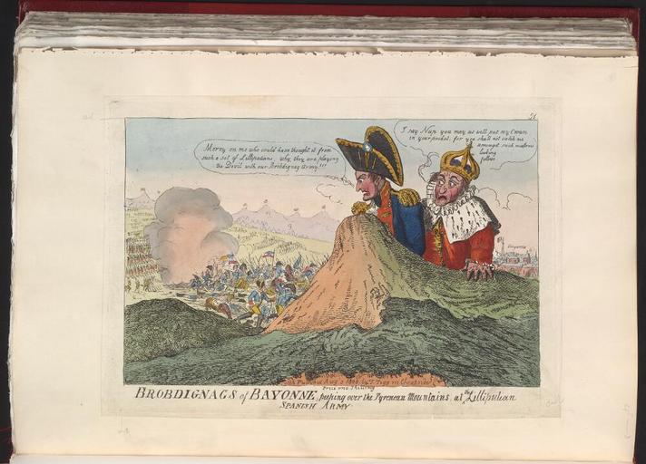 Keywords: Bodleian Libraries, Brobdignags of Bayonne peeping over the Pyrenean mountains at the Lilliputian Spanish army.jpg accession number Curzon b 4 185 Creator George Moutard Woodward artist - attributed Creator Isaac Cruikshank etcher - attributed Satire on the Peninsular war British political cartoon ; A giant Napoleon and Joseph Bonaparte look over the battlefield on which a huge Spanish army is sending a French force into retreat Records the defeat of a French force in July 1808 a further encouragement to Britain to enter the war against French occupation of Spain ; Publisher's number 51 Attribution from BMC 240 x 344 platemark ; 225 x 319 image and text mm; etching exhibition history Source filename politi004-acy-0001-0 object history object type Licensed-PD-Art PD-old-100 cc-by-4 0 place of creation London England Thomas Tegg place of discovery http //digital bodleian ox ac uk/inquire/p//00703448-dc5d-458c-b1d6-10a0ee631851 Digital Bodleian Template Bodleian Libraries Brobdignags of Bayonne peeping over the Pyrenean mountains at the Lilliputian Spanish army Uploaded with GWToolset Bodleian Libraries Brobdignags of Bayonne peeping over the Pyrenean mountains at the Lilliputian Spanish army http //iiif bodleian ox ac uk/iiif/image/00703448-dc5d-458c-b1d6-10a0ee631851/full/ 1000 1000/0/default jpg Files uploaded by the Bodleian Libraries' Wikimedian In Residence Napoleonic Wars Peninsular War Caricatures of Napoleon I of France Joseph Bonaparte A correct plan and elevation of the famous French raft constructed on purpose for the invasion of England and intended to carry 30 000 men ammunition stores c c Military Flags of France Curzon Collection |