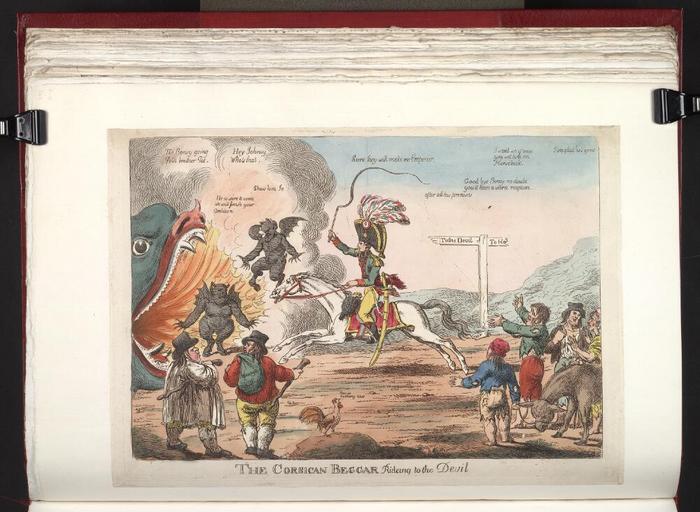 | Keywords: Bodleian Libraries, The Corsican beggar rideing to the devil.jpg Caricature of Napoleon I British political cartoon ; Napoleon a dashing figure in a hat with a large cockade gallops towards hell on a white horse saying Sure they will make me emperor John Bull and Brother Pat watch Behind Napoleon are ragged people of France ; Imprint defaced Imprint date and artist from BMC 268 x 378 cm sheet ; 249 x 346 image and text mm exhibition history Source filename politi004-abj-0001-0 object history object type Licensed-PD-Art PD-old-100 cc-by-4 0 place of creation London England J Knight place of discovery http //digital bodleian ox ac uk/inquire/p//1459d8d2-94eb-4d45-9c5f-eb0a874cc417 Digital Bodleian Template Bodleian Libraries The Corsican beggar rideing to the devil Uploaded with GWToolset Bodleian Libraries The Corsican beggar rideing to the devil http //iiif bodleian ox ac uk/iiif/image/1459d8d2-94eb-4d45-9c5f-eb0a874cc417/full/ 1000 1000/0/default jpg Files uploaded by the Bodleian Libraries' Wikimedian In Residence Caricatures of Napoleon I of France france in the 1800s John Bull Personifications of Ireland Animals in art Demons Curzon Collection |