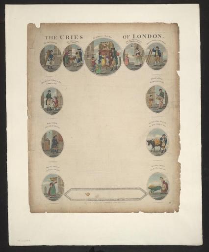| Keywords: Bodleian Libraries, Cries of London.jpg Writing blank of 1802 entitled The cries of London; Mount has manuscript annotation watermarked 1818 ; Halfpenny show box; Fine native oysters three a penny; Old chairs to mend; Shoe strings a penny a pair a penny a pair; Past 12 O'clock and a cloudy morning; Buy my mackerel my fine live mackerel; Fine China oranges Two for three half-pence; Any lilly-white sand oh my pretty maids to day; Two for a penny young lambs to sell; Oars or scullers your Honor; Come buy my primroses two bunches a penny; Cries of London single sheet; 480 x 385 mm; paper exhibition history Allegro identifier 20010614/21 05 53 jl object history object type Licensed-PD-Art PD-old-100 cc-by-4 0 place of creation London England Robert Laurie and James Whittle place of discovery http //digital bodleian ox ac uk/inquire/p//3d28fac4-6683-4ce5-ac38-eabc5a411538 Digital Bodleian Template John Johnson Cries of London Uploaded with GWToolset Bodleian Libraries Cries of London http //iiif bodleian ox ac uk/iiif/image/3d28fac4-6683-4ce5-ac38-eabc5a411538/full/ 1000 1000/0/default jpg Files uploaded by the Bodleian Libraries' Wikimedian In Residence Writing blanks Cries Cries Pedlars Uncategorized oysters Chairs Watchmen Lanterns Toys Mules Oranges Wheelbarrows Unidentified men Unidentified women Unidentified children Clothing Vues d'optique peepshows shoe laces Primula vulgaris Oars in art Robert Laurie |