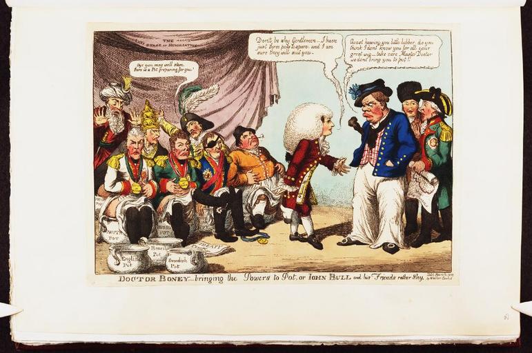 | Keywords: Bodleian Libraries, Doctor Boney bringing the powers to pot, or- Iohn Bull and his friends rather shy.jpg Caricature of Napoleon I British political cartoon 250 x 352 sheet mm exhibition history Source filename politi004-adz-0001-0 object history object type Licensed-PD-Art PD-old-100 cc-by-4 0 place of creation London England Walker place of discovery http //digital bodleian ox ac uk/inquire/p//7f50a76d-a77c-46ea-b999-a9778978e438 Digital Bodleian Template Bodleian Libraries Doctor Boney -- bringing the powers to pot or Iohn Bull and his friends rather shy Uploaded with GWToolset Bodleian Libraries Doctor Boney bringing the powers to pot or Iohn Bull and his friends rather shy http //iiif bodleian ox ac uk/iiif/image/7f50a76d-a77c-46ea-b999-a9778978e438/full/ 1000 1000/0/default jpg Files uploaded by the Bodleian Libraries' Wikimedian In Residence Napoleonic Wars Caricatures of Napoleon I of France John VI King of Portugal 1767-1826 Gustaf IV Adolf King of Sweden 1778-1837 Francis II Holy Roman Emperor Alexander I of Russia in caricatures Friedrich Wilhelm III of Prussia Pius VII in art Charles IV of Spain Mustafa IV Sultan of the Turks 1779-1808 John Bull Curzon Collection |