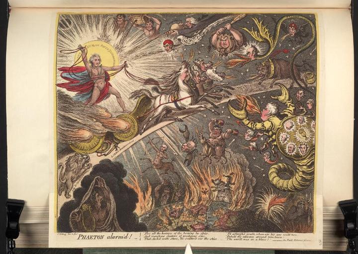 | Keywords: Bodleian Libraries, Phaeton alarmed.jpg  accession number Curzon b 26 153 Satire on Portland's second ministry and caricature of George Canning British political cartoon ; A cartoon in praise of George Canning The ghosts of Pitt with a hero's laurels and Fox with a pitchfork in hellfire flank a burning globe on which Napoleon rides mounted on the Russian bear 355 x 388 sheet ; 343 x 373 platemark mm exhibition history Source filename politi004-axx-0001-0 object history object type Sketch at File Bodleian Libraries Phaeton alarmd jpg Licensed-PD-Art PD-old-100 cc-by-4 0 place of creation London England Hannah Humphrey place of discovery http //digital bodleian ox ac uk/inquire/p//844008ec-10cf-4b14-847d-23675617968f Digital Bodleian Template Bodleian Libraries Phaeton alarmed Uploaded with GWToolset Bodleian Libraries Phaeton alarmed http //iiif bodleian ox ac uk/iiif/image/844008ec-10cf-4b14-847d-23675617968f/full/ 1000 1000/0/default jpg Files uploaded by the Bodleian Libraries' Wikimedian In Residence 1808 works in the United Kingdom George Canning Caricatures of William Pitt the Younger Charles James Fox Robert Jenkinson 2nd Earl of Liverpool Spencer Perceval Robert Stewart Viscount Castlereagh John Scott 1st Earl of Eldon William Grenville 1st Baron Grenville Richard Temple-Nugent-Brydges-Chandos-Grenville 2nd Duke of Buckingham and Chandos George Spencer 2nd Earl Spencer John Russell 6th Duke of Bedford Francis Rawdon-Hastings 1st Marquess of Hastings George Tierney Augustus FitzRoy 3rd Duke of Grafton Charles Stanhope 3rd Earl Stanhope Edward Smith-Stanley 12th Earl of Derby Frederick Howard 5th Earl of Carlisle Charles Howard 11th Duke of Norfolk Henry Vassall-Fox 3rd Baron Holland William Windham John Jervis 1st Earl of St Vincent Richard Brinsley Sheridan Henry Petty-FitzMaurice 5th Marquess of Lansdowne Samuel Whitbread 1764 “1815 Henry Addington 1st Viscount Sidmouth Thomas Erskine 1st Baron Erskine Edward Law 1st Baron Ellenborough Charles Grey 2nd Earl Grey James Maitland 8th Earl of Lauderdale Caricatures of Napoleon I of France Animals in art The Devil History of astrology Phaeton James Gillray Curzon Collection |