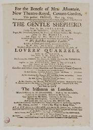 | Keywords: Bodleian Libraries, Playbill of Covent Garden, Friday, May 23, 1794, announcing The gentle shepherd &c..jpg Playbill of Covent Garden Friday May 23 1794 announcing The gentle shepherd c for the benefit of Mrs Mountain; Gentle shepherd; We shall live together laddie; Highland reel; Lovers' quarrels; Catches and glees from Harrison and Knyvett's vocal concert; What shall he have that killed the deer; Ye spotted snakes; New mariners; Where the bee sucks; Water parted from the sea; Irishman in London; That's the way to keep him; Planxty descriptive of Ireland; Surrender of Martinico; Belle's stratagem; Highland reel; Don Sebastian; Shipwreck; Siege of Meaux; Packet-boat; Captain Cook; Playbill of Covent Garden Friday May 23 1794 announcing The gentle shepherd c single sheet; 255 x 179 mm exhibition history For the benefit of Mrs Mountain Allegro identifier 20010706/09 08 44 af object history object type Licensed-PD-Art PD-old-100 cc-by-4 0 place of creation s l England s n place of discovery http //digital bodleian ox ac uk/inquire/p//71d4430a-cda4-4e30-968c-36e370d4320c Digital Bodleian Template John Johnson Playbill of Covent Garden Friday May 23 1794 announcing The gentle shepherd c Uploaded with GWToolset Bodleian Libraries Playbill of Covent Garden Friday May 23 1794 announcing The gentle shepherd c http //iiif bodleian ox ac uk/iiif/image/71d4430a-cda4-4e30-968c-36e370d4320c/full/ 1000 1000/0/default jpg Files uploaded by the Bodleian Libraries' Wikimedian In Residence Playbills Scotch pastoral opera Harrison Samuel |