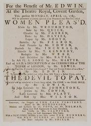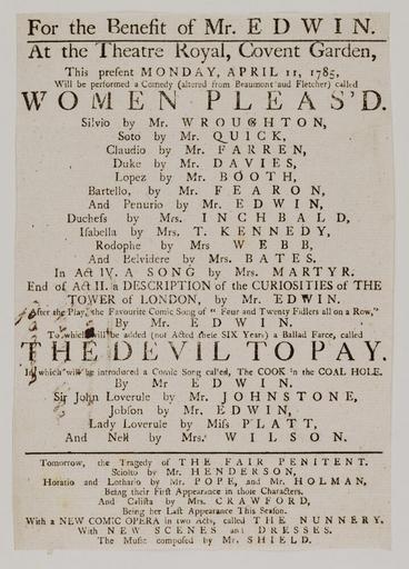 View Original:Bodleian Libraries, Playbill of Covent Garden, Monday, April 11, 1785, announcing Women pleas'd &c..jpg (719x1000)