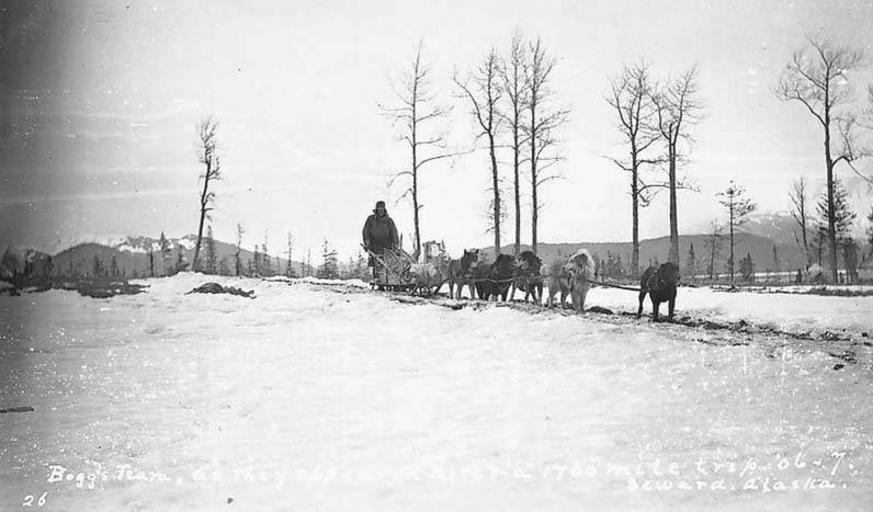 | Keywords: Boggs and dogsled team after 1700 mile trip, Seward, ca 1906 (THWAITES 12).jpeg check categories 25 October 2016 4 Photograph Creator John E Thwaites Caption on image Bogg's Team as they appeared after a 1700 mile trip '06-7 Seward Alaska PH Coll 247 12 Subjects LCTGM Dogsledding--Alaska--Seward; Dog teams--Alaska--Seward; Snow--Alaska--Seward Subjects LCSH Mushers--Alaska--Seward; Sled dogs--Alaska--Seward depicted place Seward Alaska ca 1906 Institution University of Washington UWASH-THWAITES-source accession number thwaites 12 PD-old-auto-1923 1940 Information field Order Number THW006 Images from the John E Thwaites Photographs of Alaska Collection to check Snow in Alaska Mushers Sled dogs Seward Alaska |