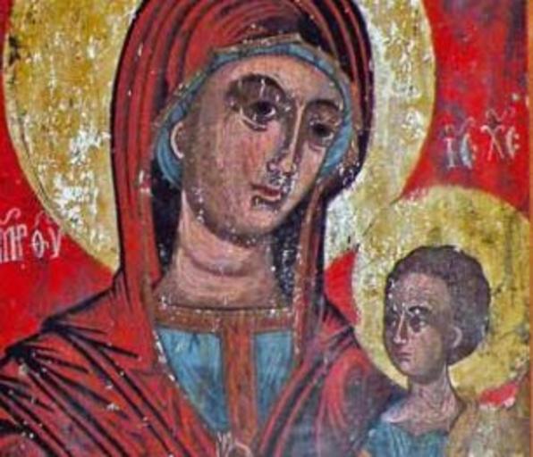 | Keywords: Bogorodica Lakočerejska detail.jpg mk Икона на Св Бого одица со Х истос II половина на XVI век во Ц квата Вознесение Х истово во Лакоче ејскиот манасти ох идско http //www kalamus com mk/pdf_spisanija/patrimonium_4/13 20 20007_2 20Spisanie 202011 20Zura pdf ON THE TRAIL OF A PAINTING WORKSHOP IN OHRID FROM THE 17 th CENTURY author century 16 PD-Macedonia Icons of the Republic of Macedonia Church of the Ascension of Jesus Gorno Lakočerej | ||||