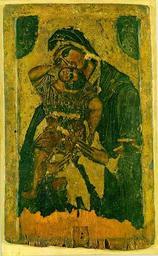 | Keywords: Bogorodica umilenie-Varos.JPG mk Бого одица умиление XV век 79 x 47 cm Од ц квата Св икола во с Ва ош П илеп Денес во узејот на акедонија Скопје http //www soros org mk/konkurs/019/i46 htm Author century 15 Icons of the Republic of Macedonia St Nicholas Church Varoš PD-old-100 |