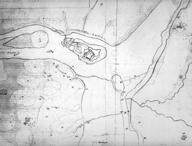 Keywords: Bohus1645.jpg en Detail from swedish map of the surroundings of Bohus fortress during a siege in August 1645 7 The danish-norwegian fortress Bohus and town Ny-Kungälv 9 Places were minor fighting have occurred 10 Swedish cavallery 11 and 12 Swedish gunbatteries 13 Danish-norwegian obstacle in the river Göta älv with defense redoubt 16 Gallows hill 22 Farm in Skårdals skate in danish-norwegian territory 23 Farm in swedish territory 24 Watermills 25 Smygen man made channel for small vessels 27 Road to Gothenburg 28 Road between Gothenburg and Vänersborg 29 The mountain Fontin 30 Movable bridge also made permanent in the war 1657 sv Detalj från svensk situationskarta vid general Lars Kaggs belägring av Bohus fästning i augusti 1645 7 Bohus fästning och staden Ny-Kungälv 8 Färjestaden 9 Platser där skärmytsling mindre strider ägt rum med fientligt fotfolk 10 Svenskt kavalleri 11 och 12 Svenska batterier med belägringsartilleri 13 Dansk-norskt sänkverk med försvars-redutt på Fiskarholmen 14 Vedbacka 15 Långåsen 16 Tjuvholmen eller Galgberget 17 Gamla galgberget 18 Lövåsen 20 Kvarnåsen 21 Gräsåsen 22 En av gårdarna i Skårdals by i det dansk-norska området Skårdals skate 23 Gården Nedre Viken Lilla Viken på svenskt område 24 vattenkvarnar 25 Smygen grävd kanal för mindre fartyg innanför Fiskarholmen 26 Jordfallet 27 Landvsäg mellan Bohus och Göteborgs hospital strax norr om Säveån 28 Landsväg mellan Göteborg och Vänersborg 29 Berget Fontin 30 Fiendens flytbrygga även använd permanent under Krabbefejden 1657 Krigsarkivet Stockholm ; Sveriges Krig 4 172 anonymous Augusti 1645 Bohus1645 cropped jpg PD-old Bohus fästning Maps of Kungälv Maps of Hisingen Ale Municipality Pictures by Dagjoh 1645 in Sweden
