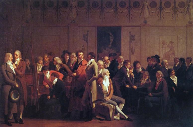 | Keywords: Boilly réunion d'artiste chez Isabey 1798.jpg fr Réunion d'artistes dans l'atelier D'Isabey Salon de 1798 huile sur toile 71 5 x 111 cm - Paris Musée du Louvre - Publié dans Aux armes et aux Arts Adam Biro 1988 own creator Louis-Léopold Boilly 1798 100px Photographie de la reproduction publiée Sont représentés de gauche à droite le compositeur Étienne Mehul le critique d'art Hoffman un inconnu le sculpteur Charles-Louis Corbet les peintres Michel-Martin Drolling Jean-Louis Demarne Jean-Baptiste Isabey penché vers le chevalet François Gérard assis devant le chevalet Nicolas-Antoine Taunay Jacques-François-Joseph Swebach le miniaturiste Charles Bourgeois les peintres Guillaume Lethière Carle Vernet le graveur Duplessi-Bertaux les architectes Pierre-François-Léonard Fontaine et Charles Percier l'acteur Baptiste aîné de la comédie française assis près du carton à dessins le peintre et architecte Jean-Thomas Thibaut les peintres Jan Frans Van Dael et Pierre-Joseph Redouté l'acteur Talma les peintres Charles Meynier Louis-Léopold Boilly l'acteur Chenard du théâtre italien les peintres Xavier Bidault Girodet-Trioson assis et fixant le spectateur le sculpteur Denis Chaudet le graveur Maurice Blot le sculpteur François-Frédéric Lemot le peintre Gioacchino Serangeli et un inconnu Images by Siren-Com painting portrait French 1751-1800 Réunion d'artistes chez Isabey WGA form painting WGA type portrait WGA School French WGA time period 1751-1800 PD-old-auto 1845 ImageNote 1 76 1002 191 415 3817 2520 2 Étienne Mehul ImageNoteEnd 1 ImageNote 2 272 931 200 377 3817 2520 2 Le critique d'art Hoffman ImageNoteEnd 2 ImageNote 3 687 1064 181 296 3817 2520 2 Charles-Louis Corbet ImageNoteEnd 3 ImageNote 4 873 1026 148 315 3817 2520 2 Michel-Martin Drolling ImageNoteEnd 4 ImageNote 5 1021 1083 224 286 3817 2520 2 Jean-Louis Demarne ImageNoteEnd 5 ImageNote 6 825 1346 177 286 3817 2520 2 Jean-Baptiste Isabey ImageNoteEnd 6 ImageNote 7 1016 1403 181 325 3817 2520 2 François Gérard ImageNoteEnd 7 ImageNote 8 1245 978 148 353 3817 2520 2 Nicolas-Antoine Taunay ImageNoteEnd 8 ImageNote 9 1403 1021 124 344 3817 2520 2 Jacques-François-Joseph Swebach ImageNoteEnd 9 ImageNote 10 1532 993 157 329 3817 2520 2 Charles Bourgeois ImageNoteEnd 10 ImageNote 11 1718 1026 181 377 3817 2520 2 Guillaume Lethière ImageNoteEnd 11 ImageNote 12 1923 1169 138 320 3817 2520 2 Carle Vernet ImageNoteEnd 12 ImageNote 13 2052 1069 162 282 3817 2520 2 Duplessi-Bertaux ImageNoteEnd 13 ImageNote 14 2075 1360 153 301 3817 2520 2 Jean-Thomas Thibaut ImageNoteEnd 14 ImageNote 15 2782 1398 196 344 3817 2520 2 Jan Frans Van Dael ImageNoteEnd 15 ImageNote 17 2285 1083 157 296 3817 2520 2 Charles Percier ImageNoteEnd 17 ImageNote 18 2457 1145 134 248 3817 2520 2 Baptiste aîné de la comédie française ImageNoteEnd 18 ImageNote 19 3426 1074 129 301 3817 2520 2 Gioacchino Serangeli ImageNoteEnd 19 ImageNote 20 3306 1360 200 310 3817 2520 2 François-Frédéric Lemot ImageNoteEnd 20 ImageNote 21 3192 1136 148 234 3817 2520 2 Talma ImageNoteEnd 21 ImageNote 22 3044 1384 205 329 3817 2520 2 Girodet-Trioson ImageNoteEnd 22 |