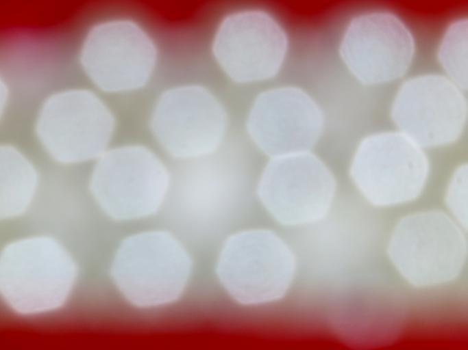 Keywords: bokeh background white balls red hexagon arrangement chemistry particles abstract circle light points out of focus points of light shimmer lichtreflex sparkle decoration honeycomb structure hexagonal combs pattern structure