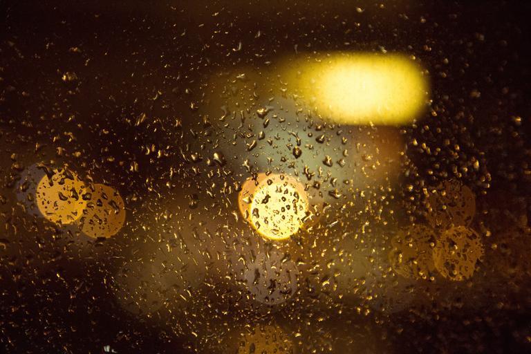 Keywords: bokeh glass window wet rain rain drops blur lights night