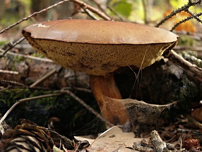 Keywords: boletus old fruiting bodies fungus old fruiting bodies macro cone leaves web forest dry twigs autumn sunset