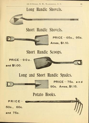 | Keywords: Bolgiano's new century catalogue 1901 (16395790888).jpg 935 B Street N W Washington D C <br> 39 <br> Long Handle Shovels <br> Short Handle Shovels <br> PRICE -65c 95c <br> Ames 1 10 <br> Short Handle Scoops <br> PRICE-90c <br> and 1 00 <br> Long and Short Handle Spades <br> PRICE -75c and <br> 90c Ames 1 15 <br> Potato Hooks <br> PRICE- <br> 50c 60c <br> and 75c 42153625 132708 65863 Page 39 Text http //www biodiversitylibrary org/page/42153625 1901 10 5962/bhl title 65863 F W Bolgiano Co ; Henry G Gilbert Nursery and Seed Trade Catalog Collection Biodiversity Heritage Library Bolgiano's new century catalogue 1901 tested seeds for the garden and farm Garden Stories Bulbs Plants Catalogs Fruit Garden tools Nurseries Horticulture Seeds Vegetables U S Department of Agriculture National Agricultural Library bhl page 42153625 dc identifier http //biodiversitylibrary org/page/42153625 bhlGardenStories F W Bolgiano BHLinbloom bulbs plants nurseries horticulture u s department of agriculture national agricultural library bhlgardenstories f w bolgiano bhlinbloom Information field Flickr posted date ISOdate 2015-02-19 CC-BY-2 0 BioDivLibrary https //flickr com/photos/61021753 N02/16395790888 2015-08-24 02 52 07 cc-by-2 0 PD-old-70-1923 Bolgiano's new century catalogue 1901 Photos uploaded from Flickr by Fæ using a script |