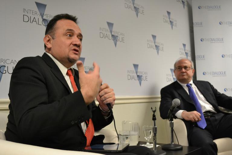 Keywords: people indoor René Orellana, minister of development planning of Bolivia, joins Michael Shifter, president of the Inter-American Dialogue for a discussion of Bolivia's development agenda. Photo by: Ben Raderstorf René Orellana, minister of development planning of Bolivia, joins Michael Shifter, president of the Inter-American Dialogue for a discussion of Bolivia's development agenda. Photo by: Ben Raderstorf |