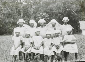| Keywords: Boloi W'akambyi, Congo, ca. 1900-1915 (IMP-CSCNWW33-OS11-1).jpg Congo Free State or the Belgian Congo present day Democratic Republic of the Congo The girls wear matching white smock dresses and hats The slide is captioned No 34 Boloi W'akambyi This slide comes from a collection generated by missionaries working for the Congo-Balolo Mission a mission begun in 1889 under the supervision of the East London Training Institute for Home and Foreign Missions that developed into the interdenominational evangelical mission Regions Beyond Missionary Union after 1900 Photographer Unknown Filename IMP-CSCNWW33-OS11-1 tif Coverage date 1900/1915 Subject unesco Girls Part of collection International Mission Photography Archive ca 1860-ca 1960 Part of subcollection Photographs from the Centre for the Study of World Christianity University of Edinburgh U K ca 1900-ca 1940s Subject corporate name Congo-Balolo Mission Repository name Centre for the Study of World Christianity Archival file Volume2/IMP-CSCNWW33-OS11-1 tif Repository address The University of Edinburgh School of Divinity New College Mound Place Edinburgh EH1 2LX United Kingdom Geographic subject country Congo Format aacr2 lantern slides 8 2 x 8 2cm Geographic subject continent Africa Rights Contact the repository for details Part of series Regions Beyond Missionary Union Congo People and Places CSCNWW33/OS11 Repository email divinity-CSWC ed ac uk Date created 1900/1915 Publisher of the digital version University of Southern California Libraries Subject aat genre group portraits Format aat lantern slides; photographs Access conditions http //www ed ac uk/schools-departments/divinity/research/centres/world-christianity/collections-resources Geographic subject educational facilities File CSCNWW33/OS11/1 Subject lcsh Girls 1900/1915 date created author http //digitallibrary usc edu/cdm/ref/collection/p15799coll123/id/78089 PD-old-70-1923 Girls of Africa Congo People of the Democratic Republic of the Congo Girls Congo-Balolo Mission Black and white photographs of groups Congo Magic lantern images Images from USC Digital Library uploaded by Fæ International Mission Photography Archive ca 1860-ca 1960 |