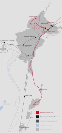 Keywords: BolzanoTramMap.svg Karte des Bozner Straßenbahnetzes Map of the Bolzano tram network Mappa della rete tranviaria di Bolzano Own Luigino Created with Inkscape Tram transport in Bolzano Tram maps of Trentino-South Tyrol Bolzano