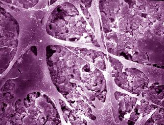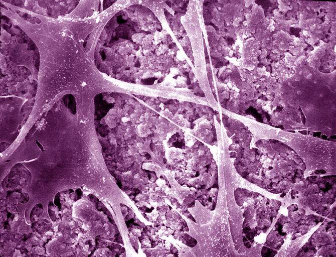 MAKE A MEME View Large Image Bone Cells (5828753702).jpg Colorized scanning electron micrograph shows bone cells attaching to a new type of bone cement made of calcium phosphate See also http //www nist gov/public_affairs/techbeat/tb2006_0413 htm cell www nist gov/...