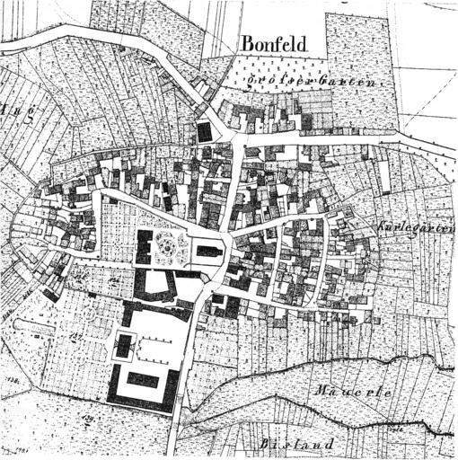 Keywords: Bonfeld - Ortsplan aus dem 19. Jahrhundert.png Bonfeld Baden-Württemberg Germany from the 19th century probably a part of the Württembergische Flurkarte 1 2 5000 which was created about 1830 Reproduction after Heimatbuch Bonfeld 2000 fig 119 on page 205 There are no copyright problems because the reproduction in the Heimatbuch is a simple reproduction which does not create any copyright and the creator of the original map is definitely dead for more than 100 years Bonfeld Baden-Württemberg aus dem 19 Jahrhundert wahrscheinlich aus der Württembergischen Flurkarte 1 2 5000 die um 1830 entstand Abbildung aus dem Heimatbuch Bonfeld 2000 Abb 119 auf Seite 205 Es gibt keine Copyright-Probleme da die Wiedergabe im Heimatbuch eine einfache Reproduktion ist die keine neuen Rechte erzeugt und der Urheber der originalen Karte auf jeden Fall über 100 Jahre tot ist Scanned from Heimatbuch Bonfeld 2000 fig 119 on page 205 by Aristeas author century 19 probably ca 1830 Bonfeld Württembergische Flurkarte 1 2 500 19th-century maps of Baden-Württemberg PD-old-100 ImageNote 1 2666 3346 491 320 6367 6394 2 Evangelische Kirche ImageNoteEnd 1 ImageNote 2 1728 3090 587 650 6367 6394 2 Oberschloss ImageNoteEnd 2 ImageNote 3 1770 3687 1035 639 6367 6394 2 Meierei beim Oberschloss ehemaliges Altes Schloss ImageNoteEnd 3 ImageNote 4 1418 4518 640 597 6367 6394 2 Unterschloss 1956 ausgebrannt 1971 gesprengt ImageNoteEnd 4 |