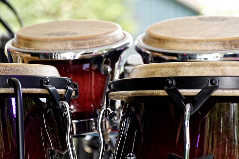 Keywords: bongos drums instrument musical instrument detail close up analog band music close