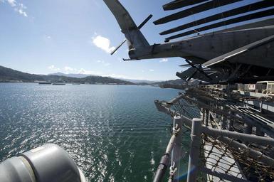 Keywords: Bonhomme Richard ARG arrives in Malaysia for port visit 121022-N-XY604-034.jpg en Amphibious assault ship USS Bonhomme Richard LHD 6 arrives in Kota Kinabalu for a scheduled port visit The Bonhomme Richard Amphibious Ready Group ARG commanded by Capt Cathal S O'Connor is comprised of amphibious assault ship USS Bonhomme Richard LHD 6 amphibious dock landing ship USS Tortuga LSD 46 and amphibious transport dock ship USS Denver LPD 9 and is currently operating in the 7th Fleet Area of Responsibility <br>Unit Amphibious Squadron 11 2012-10-22 Petty Officer 3rd Class Karen Blankenship https //www dvidshub net/image/765242/bonhomme-richard-arg-arrives-malaysia-port-visit 121022-N-XY604-034 2012-10-22 09 43 KOTA KINABALU MY PD-USGov-Military-Navy USS Tortuga LSD-46 USS Bonhomme Richard LHD-6 USS Denver LPD-9 Images from DoD uploaded by Fæ |