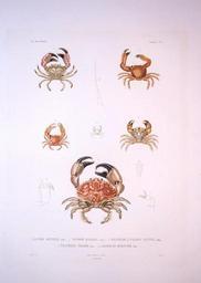Keywords: Bonite-crustacés-pl02.jpg en Zoology crustaceans fr Zoologie crustacés Xanthe dentelé Cycloxanthops sexdecimdentatus Panopé marbré Eurypanopeus crenatus Trapézie à taches jaunes Trapezia flavopunctata Trapézie tigrée Trapezia tigrina Domecie hérissée Domecia hispida numérisation Atlas Zoologique du Voyage de la corvette La Bonite Bibliothèque patrimoniale de Gray Jeffdelonge <span class signature-talk >talk</span> 1852 PD-old Voyage de la Bonite Cycloxanthops sexdecimdentatus Eurypanopeus crenatus Trapezia flavopunctata Trapezia tigrina Domecia hispida |