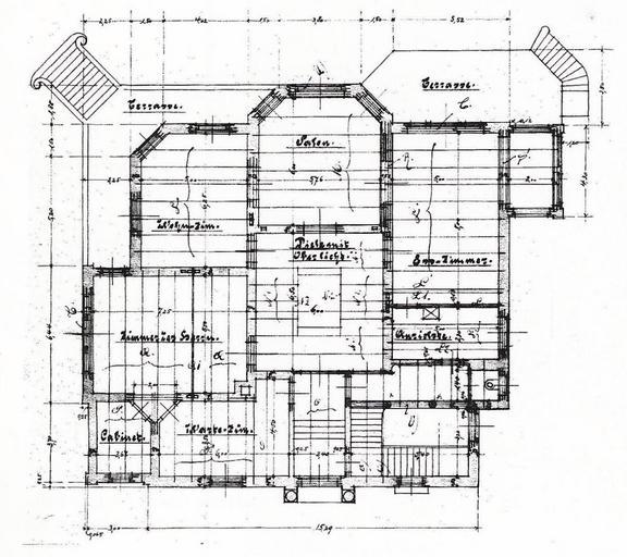 Keywords: Bonn Villa Finkler erster Entwurf 1900 Grundriss Erdgeschoss.jpg Villa Finkler Tempelstraße 10 Bonn Erster Entwurf Zeichnung zum Bauantrag Grundriss des Erdgeschosses Olga Sonntag Villen am Bonner Rheinufer 1819 “1914 Bouvier Bonn 1998 ISBN 3-416-02618-7 Band 3 Katalog 2 S 160 1900 Westdeutsche Bau-Actien-Gesellschaft vormals Strecke und Söhne signature Strecke und ppa Scheidgen PD-old Tempelstraße 10 Bonn Floor plans of Germany |