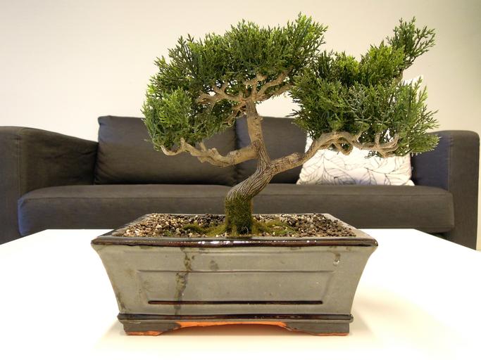 Keywords: bonsai tree plant nature foliage leaf green white blue close-up sofa