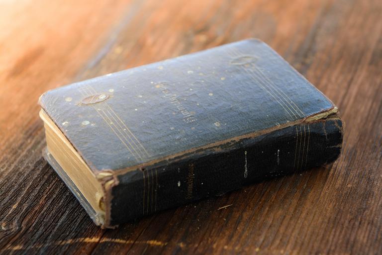 Keywords: book old antique old book used worn wood light close-up