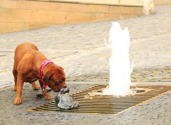 Keywords: bordeaux de dogue street mastiffs french two pet dog nature big collar puppy pavement outdoor europe outside city guard huge paving the alley brno czech republic animal my friend guardian czech fountain water