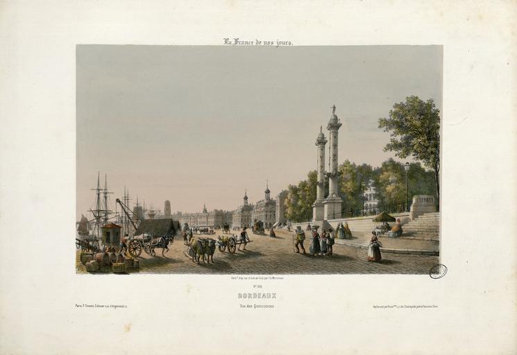| Keywords: Bordeaux, Vue des Quinconces - Fonds Ancely - B315556101 A MERCEREAU 7 051.jpg Impression en 3 coul par Frick frères à Paris Fait partie d'un ensemble de recueils de lithographies de Mercereau composés de lithographies provenant de La France de nos jours vaste suite publiée par livraisons de 1853 à 1876 et comprenant 475 planches en deux tirages l'un à deux teintes noir et bistre l'autre en couleurs Les libraires ont réuni ces planches en albums de composition variable quant au nombre de planches et aux dessinateurs Asselineau Mercereau Maurice Deroy etc Un titre Les Pyrénées par Ch Mercereau; Bagnères-de-Luchon par Ch Mercereau était frappé sur le plat supérieur de la reliure de l'album ainsi que le nom du Libraire pour lequel il était réalisé La plupart des recueils de ces planches pyrénéennes portent le nom de Sajous libraire à Bagnères-de-Luchon Pl 1 à 18 numérotées de 370 à 386 Pl 374 pl 5 et 6 en double -- Pl 19 20 et 21 numérotées respectivement 407 415 et 418 Ces trois pl ont été dessinées et lithographiées par Asselineau -- Pl 22 23 et 24 numérotées 438 439 et 440 -- Pl 22 lith par Aubrun -- Pl 25 numérotée 441 -- Pl 26 à 40 numérotées de 327 à 341 -- Pl 41 à 46 numérotées de 363 à 368 -- Pl 47 numérotée 369 -- Pl 48 num 292 -- Pl 49 et 50 num 264 et 265 -- Pl 51 et 52 num 268 et 269 -- Pl 53 à 55 num de 293 à 295 -- Pl 56 num 300 -- Pl 57 à 59 num de 307 à 309 -- Pl 60 à 70 num de 316 à 326 -- Pl 71 num 63 dessin et lith d'Asselineau imprimerie Destouches -- Pl 72 et 73 num 87 et 88 dessin et lith d'Asselineau imprimerie Destouches -- Pl 74 num 124 signée Lebreton éditée chez Lalonde à Paris et imprimée chez Becquet frères à Paris -- Pl 75 num 161 dessin et litho d'Asselineau imprimerie Destouches --Pl 76 à 78 num de 207 à 209 -- Pl 79 à 81 num de 211 à 213 -- Pl 82 num 220 dessin et lith de Maurice imprimerie Destouches -- Pl 83 à 86 num de 226 à 229 -- Pl 87 et 88 num 234 et 235 -- Pl 89 à 91 num de 273 à 275 -- Pl 92 et 93 num 290 et 291 Pièces jointes 6 pl sépia dont certaines sont des doubles du recueil de Mercereau Les cinq premières planches sont numérotées respectivement 318 321 324 331 386 La dernière planche n'est pas extraite de La France de nos jours mais de L'Espagne pittoresque et monumentale Ces six planches sont signées Mercereau éditées chez Sinnet et imprimées chez Frick frères Ancely René 1876 - 1966 Possesseur fre public domain domaine public B315556101_A_MERCEREAU_7_051 jpg image/jpeg 1 f de pl lithogr ; 30 cm oblong Frick frères Imprimeur Sinnet F Éditeur http //numerique bibliotheque toulouse fr/collect/general/index/assoc//ark /74899/B315556101_A_MERCEREAU_7_051 dir/B315556101_A_MERCEREAU_7_051 jpg Bibliothèque municipale de Toulouse A-MERCEREAU 7-51 Creator Charles Mercereau http //catalogues toulouse fr/web2/tramp2 exe/do_keyword_search/log_in setting_key BMT1 servers 1home query p001675 St Jean-de-Luz intérieur de l'Eglise St Jean-de-Luz le Château de l'Infante Biarritz Vue générale prise du Phare Château de Mauvesin près Bagnères-de-Bigorre Hautes Pyrénées Bagnères de Bigorre Hautes Pyrénées - Intérieur de l'Eglise des Carmes en couleurs Bagnères de Bigorre Hautes Pyrénées - Intérieur de l'Eglise des Carmes Bagnères-de-Bigorre - Eglise et couvent des Carmes Bagnères-de-Bigorre Hautes-Pyrénées - Tour des Jacobins Cascade et Pont de Magenta Vallée de l'Esponne Hautes Pyrénées Cascade de Trémes-Aïgues Vallée de Grip Hautes Pyrénées St Sauveur Hautes Pyrénées - Le Pont Napoléon Bayonne - Eglise St André Arreau et la Vallée d'Aure Hautes Pyrénées - Vue prise au dessus de la route du Col d'Aspin Auch - Vue prise sur les bords du Gers Auch - Vue de la Cathédrale Auch - Intérieur de la Cathédrale Bagnères-de-Bigorre - Vue Générale prise de la Fontaine ferrugineuse Eaux-Bonnes Basses-Pyrénées - L'établissement Thermal et la Chapelle Nantes - Vue de l'Eglise Ste Croix Le Croisic - Plage des Baigneurs et Etablissement de Bains Le Folgoët - Vue de l'Eglise Brèche de Roland prise de Gèdres Hautes Pyrénées Eglise des Templiers à Luz Chapelle du couvent de Pouëlahun i e Pouey Lahun - Vallée d'Azun Hautes Pyrénées Le Pont de Scia - Route de Luz à Gavarnie Hautes-Pyrénées Vue de l'établissement de la Raillière près Cauterets Hautes-Pyrénées Vue générale de Cauterets prise du Mamelon Vert Hautes-Pyrénées Vue du Fort de Lourdes Hautes-Pyrénées Vue d'Argelès-de-Bigorre Hautes-Pyrénées Vue de St Sauveur Hautes-Pyrénées Le Pas de l'Echelle Route de Gavarnie Hautes-Pyrénées Fond de la Vallée d'Argelès prise de la terrasse de St Savin Hautes-Pyrénées Place Grammont à Pau Basses-Pyrénées Vue générale des Eaux-Bonnes Basses-Pyrénées Barèges et la Vallée du Bastan Hautes-Pyrénées Chute supérieure du Pont d'Espagne Hautes-Pyrénées La grotte miraculeuse à Lourdes Hautes-Pyrénées Eglise de Bétharram et Pont de Lestelle Basses Pyrénées Cascade du Cerizet Près Cauterets Hautes-Pyrénées Pic du Midi d'Ossau 2885m Basses Pyrénées - Vue prise du 3e plateau de Bious-Artigues Toulouse - Cloître du Musée et Clocher des Augustins Pau - Vue prise de la terrasse du Château Pau - Vue du Château prise du Parc Toulouse - Cloître du Musée Galerie du Moyen-Age Toulouse - La maison de pierre fragment de la façade Toulouse - Intérieur de St Sernin St Jean-de-Luz Fort du Socoa Toulouse - Vue du Capitole Bordeaux Vue de la Porte du Caillau i e Cailhau Bordeaux Porte de la grosse Cloche Bordeaux - Vue de la Tour et de l'Eglise de St Michel Toulouse - Vue du Pont de pierre prise du Quai de Brienne Toulouse - Abside de l'Eglise de St Sernin de l'an 1097 Toulouse - Choeur de la Cathédrale St Etienne Rouen - Hôtel de Bourgtheroulde Biarritz - Vue des Bains Napoléon et du Casino Biarritz - Vue des Bains du Port Vieux Biarritz - Vue de l'Entrée de la Ville à l'arrivée de Bayonne Le Lac Bleu Hautes-Py