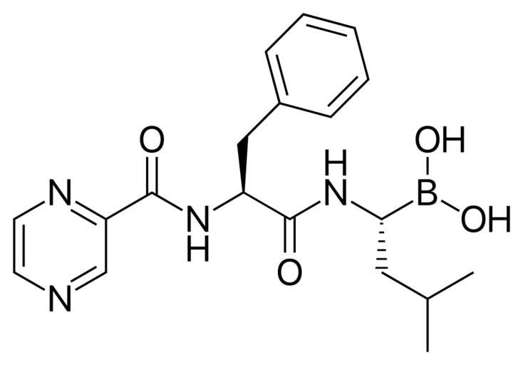 | Keywords: Bortezomib.svg validSVG Skeletal formula of bortezomib Created using http //www acdlabs com/download/chemsk html ACD/ChemSketch 10 0 and Inkscape Own work after cite journal World Health Organization International Nonproprietary Names for Pharmaceutical Substances INN Recommended INN List 50 WHO Drug Information 21 4 273 2003 http //whqlibdoc who int/druginfo/INN_2003_list50 pdf 2008-10-13 Fvasconcellos Bortezomib | ||||
