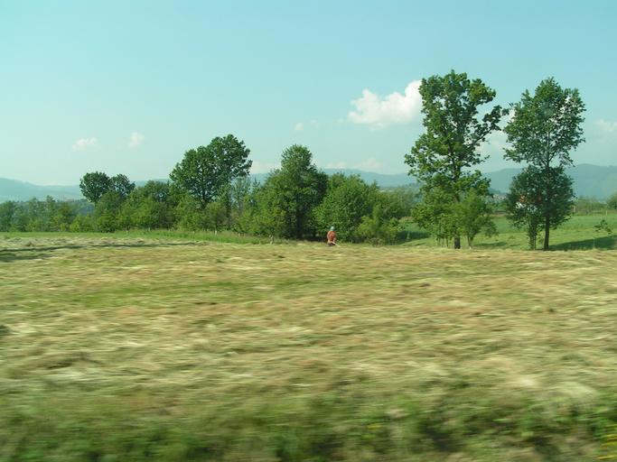 Keywords: Bosniak woman in eastern Bosnia2.jpg en A w Bosniak woman working in the field cutting hay in eastern Bosnia own Polargeo 2004 Landscapes of Bosnia and Herzegovina Hay fields