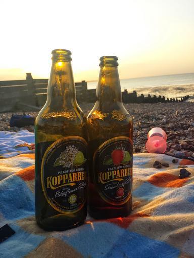 Keywords: bottle beach beer picnic sunset cider drink