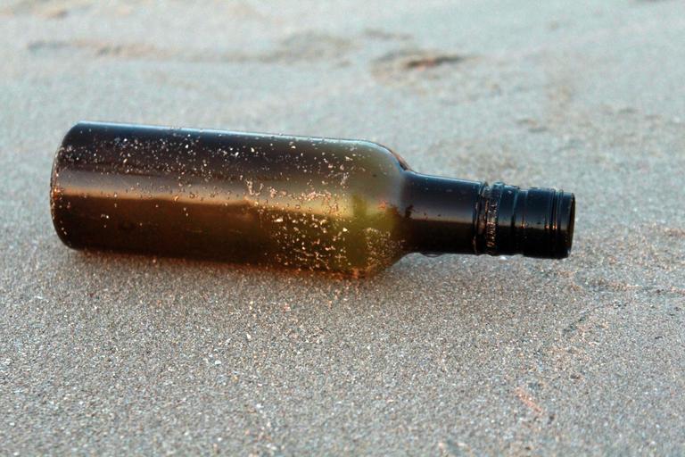 Keywords: bottle beach recycling waste trash garbage pollution environment brown sand