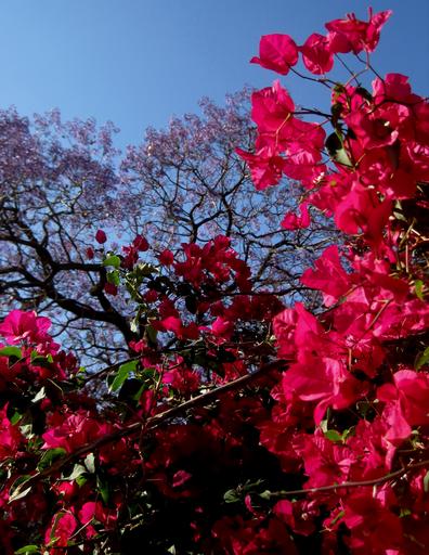 Keywords: bougainvillia pink deep jakaranda tree purple shrub tree sblue ky garden