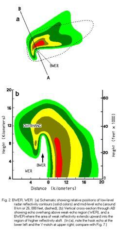 Keywords: Bounded weak echo region.gif en Idealized radar schematics of a bounded weak echo region BWER which is found in some supercell thunderstorms 2014-06-01 16 54 12 http //www srh noaa gov/oun/ n spotterglossary-figure2 Schematics of a bounded weak echo region BWER a radar signature of some supercell thunderstorms PD-USGov Uploaded with UploadWizard Diagrams of supercells Radar images of thunderstorms |