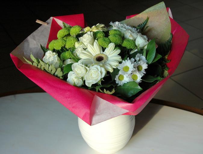 Keywords: bouquet flowers white green