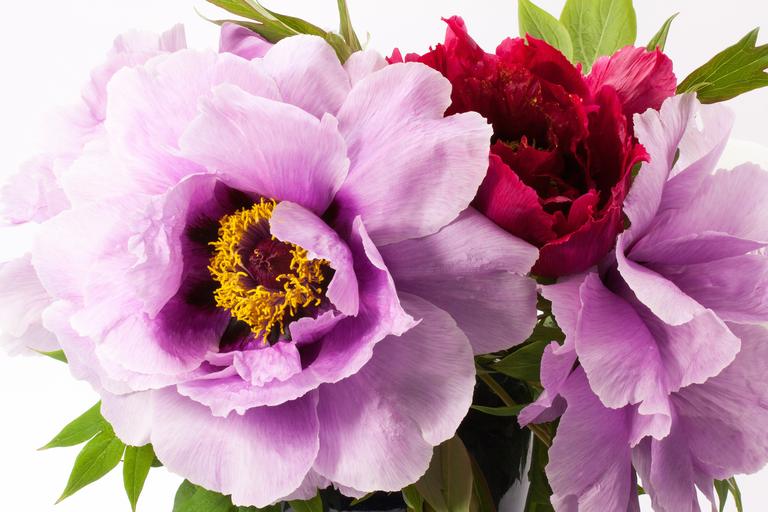 Keywords: bouquet peony flower nature flora spring blossom bloom ornamental plant purple red green double flower lush
