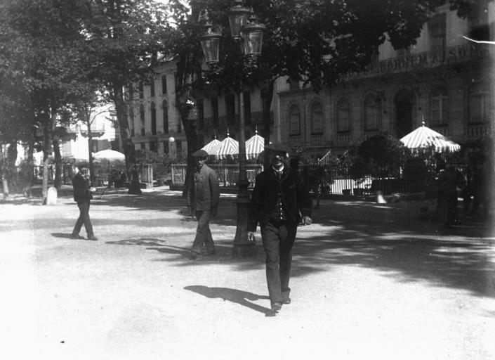 | Keywords: bibliothèque de toulouse bibliothèquedetoulouse men street scene streetscene 1890's 1890s 19th century 19thcentury blackandwhite monochrome outdoor black and white Fonds Trutat - Photographie ancienne Cote : TRU C 317 Localisation : Fonds ancien Original non communicable Titre : Bourdette aux Quinconces, Luchon, 12 septembre 1895 Auteur : Trutat, Eugène Rôle de l’auteur : Photographe Lieu de création : Bagnères-de-Luchon (Haute-Garonne) Date de création : : 1895 Mesures : 5 x 6 cm Mot(s)-clé(s) : -- Cours -- Homme -- Béret -- Costume -- Lampadaire -- Arbre -- Allée -- Parasol -- Hôtel -- Bourdette -- Bagnères-de-Luchon (Haute-Garonne) -- Cours des Quinconces (Bagnères-de-Luchon) -- Pique (France ; vallée) -- Luchonnais, Massif du (France) -- 19e siècle, 4e quart Médium : Photographies Médium : Portraits de groupe -- Négatifs sur plaque de verre -- Noir et blanc -- Paysages urbains -- Scènes de rue Bibliothèque de Toulouse. Domaine public Fonds Trutat - Photographie ancienne Cote : TRU C 317 Localisation : Fonds ancien Original non communicable Titre : Bourdette aux Quinconces, Luchon, 12 septembre 1895 Auteur : Trutat, Eugène Rôle de l’auteur : Photographe Lieu de création : Bagnères-de-Luchon (Haute-Garonne) Date de création : : 1895 Mesures : 5 x 6 cm Mot(s)-clé(s) : -- Cours -- Homme -- Béret -- Costume -- Lampadaire -- Arbre -- Allée -- Parasol -- Hôtel -- Bourdette -- Bagnères-de-Luchon (Haute-Garonne) -- Cours des Quinconces (Bagnères-de-Luchon) -- Pique (France ; vallée) -- Luchonnais, Massif du (France) -- 19e siècle, 4e quart Médium : Photographies Médium : Portraits de groupe -- Négatifs sur plaque de verre -- Noir et blanc -- Paysages urbains -- Scènes de rue Bibliothèque de Toulouse. Domaine public |