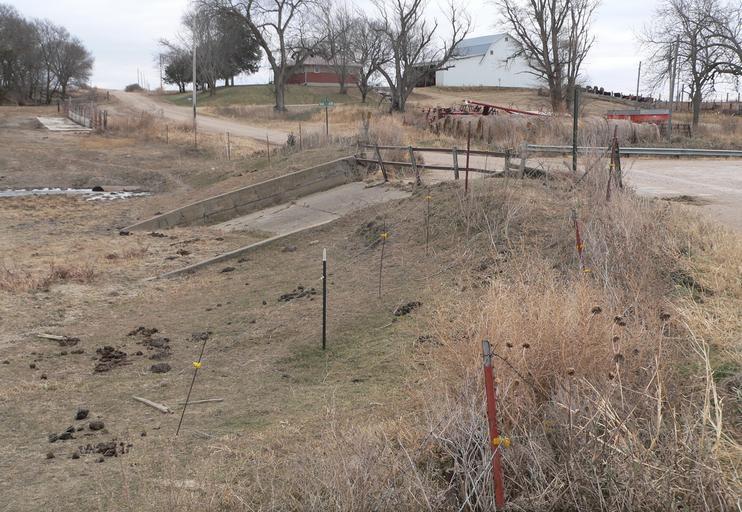 Keywords: Bow Valley Mills site spillway from W.JPG Bow Valley Mills site located at 892 Rd and 568 Ave in Cedar County Nebraska concrete spillway crossing the road seen from the west Visible just beyond the right edge of the spillway partially embedded in ice is a horizontal metal pipe; this may be the mill's pipe flume which ran under the road 892 Rd runs eastward across the upper portion of the picture The mill building has apparently been moved or demolished own 2010-11-26 Ammodramus Pictures by Ammodramus Taken with Panasonic Lumix DMC-FZ20 Bow Valley Mills |