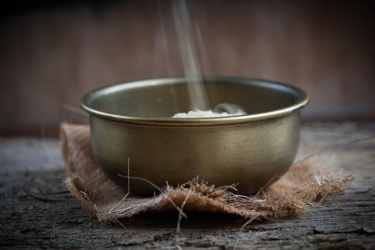 Keywords: bowl brass brass bowl old used shell rice wholemeal rice filling in motion close food-photography food