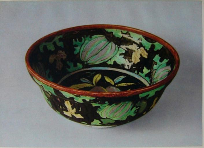 Keywords: Bowl Mellon Mokubei.JPG 模様鉢 径24cm 高10 8cm 米 1767-1833 江戸時代 Enamelled ceramic bowl with Design of Mellons in Black Ground 24cm diameter 10 8cm height by MOKUBEI ACE1767-1833 Kyoto Japan 大和文華 第9号 昭和28年3 YAMATO BUNNKA No 9 1953 March editor YAMATO-BUNKAKAN Osaka Japan 17世 後 late 17th century Publised in 1937 米 AOKI MOKUBEI ACE1767-1833 Photo YAMATO-BUNKAKAN ACE1953 PD-Japan-oldphoto Porcelain of Japan Ceramics of the Edo period Aoki Mokubei |
