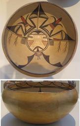 | Keywords: Bowl, Sichomovi (Hopi) Pueblo, Arizona, c. 1900, Honolulu Museum of Art, 4251.1.jpg Bowl Sichomovi Hopi Pueblo Arizona c 1900 hand-built ceramic with slips and painted decoration Honolulu Museum of Art accession 4251 1 own photo 2014 Hiart Native American ceramics in the Honolulu Museum of Art Hopi pottery Sichomovi Cc-zero | ||||