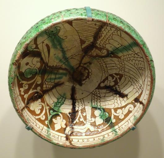 Keywords: Bowl with fantastic bird, Garrus ware, Iran, Garrus district, Seljuk period, 12th or 13th century AD, earthenware with carved and painted slip design under glaze - Cincinnati Art Museum - DSC03987.JPG en Exhibit in the Cincinnati Art Museum Cincinnati Ohio USA This artwork is in the public domain because the artist died more than 70 years ago Photography was permitted in the museum without restriction 2013-05-14 11 13 35 own Daderot cc-zero Seljuk pottery in the Cincinnati Art Museum Uploaded with UploadWizard Slipware |