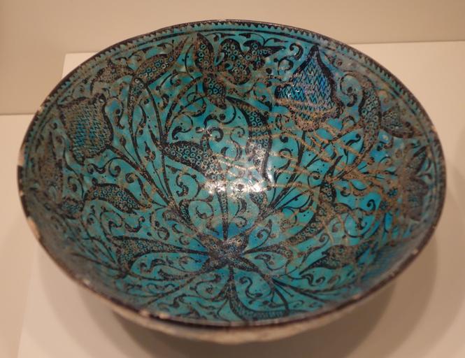 Keywords: Bowl with floral design, Iran, Ilkhanid period, first half of 14th century, earthenware with black painting under turquoise glaze - Cincinnati Art Museum - DSC04057.JPG en Exhibit in the Cincinnati Art Museum Cincinnati Ohio USA This artwork is in the public domain because the artist died more than 70 years ago Photography was permitted in the museum without restriction 2013-05-14 11 23 12 own Daderot cc-zero Ilkhanid pottery in the Cincinnati Art Museum Uploaded with UploadWizard Turquoise of Nishapur |