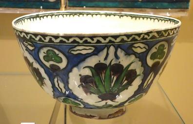 Keywords: Bowl with pomegranate plants, Syria, Damascus, late 16th century, underglaze-painted stonepaste - Royal Ontario Museum - DSC04724.JPG en Exhibit in the Royal Ontario Museum Toronto Ontario Canada This work is old enough so that it is in the public domain Photography was permitted in the museum without restriction 2013-10-08 17 14 33 own Daderot cc-zero Uploaded with UploadWizard Ceramics of Syria in the Royal Ontario Museum |