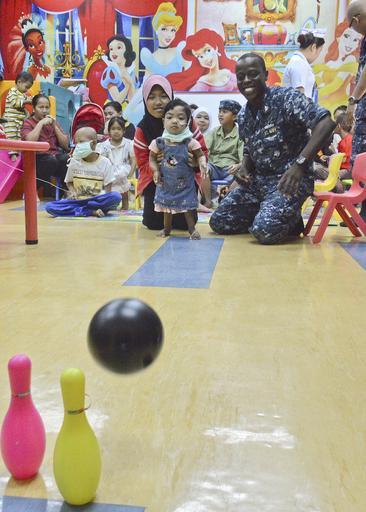 | Keywords: Bowling 130301-N-UE250-091.jpg en Senior Chief Interior Communications Electrician Cedric Glover assigned to the submarine tender USS Frank Cable AS 40 bowls with a patient at the Likas Hospital's child cancer ward Frank Cable sailors volunteered while in port to entertain children of both the child cancer and blood transfusion wards reading playing games music and dancing U S Navy photo by Mass Communication Specialist 2nd Class Corey Hensley/Released 2013-03-01 Corey Hensley https //www dvidshub net/image/879361 130301-N-UE250-091 2013-03-04 22 51 KOTA KINABALU MY PD-USGov-Military-Navy USS Frank Cable AS-40 Images from DoD uploaded by Fæ |