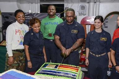 Keywords: BOXARG13MEU16 160621-N-UB927-010.jpg en 160621-N-UB927-095 ARABIAN GULF June 21 2016 Members of the Diversity Team cut a cake on the mess decks following the Lesbian Gay Bisexual and Transgender LGBT observance aboard the amphibious assault ship USS Boxer LHD 4 Boxer is the flagship for the Boxer Amphibious Ready Group and with the embarked 13th Marine Expeditionary Unit is deployed in support of maritime security operations and theater security cooperation efforts in the U S 5th Fleet area of operations U S Navy photo by Mass Communication Specialist 3rd Class Brett Anderson/Released <br>Unit USS Boxer LHD 4 2016-06-21 Petty Officer 3rd Class Brett Anderson https //www dvidshub net/image/2680467/boxarg13meu16 160621-N-UB927-010 2016-06-22 03 48 GULF OF ADEN PD-USGov-Military-Navy 13th Marine Expeditionary Unit USS Boxer LHD-4 Images from DoD uploaded by Fæ |