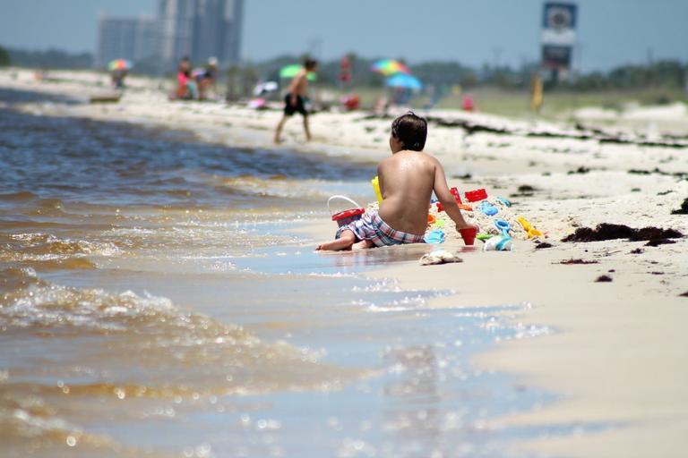 Keywords: boy beach playing in sand summer people water sand plastic toys play shovel